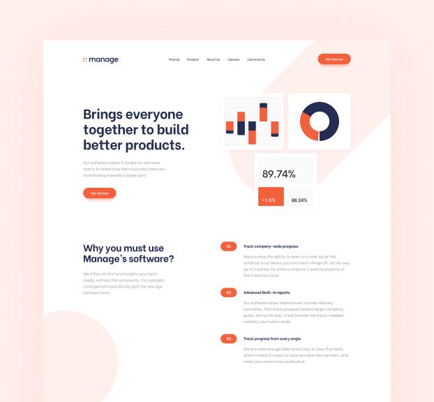 This project required me to build a fully responsive landing page to the designs provided. I used HTML5, along with CSS Grid and JavaScript for the areas that required interactivity, such as the features section.